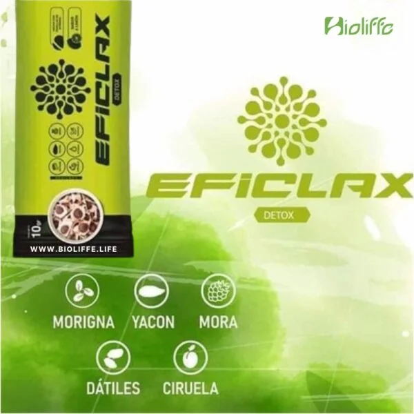 Efliclax es la única formulación que contiene un proceso de liofilización de las semillas de moringa, acompañado de hojas y frutos de pitahaya, ciruela, dátiles, mora y yacón, que busca enseñarte a nutrir bien tu cuerpo y darte el equilibrio que necesitas para potenciar tu sistema de auto-limpieza y así mejorar las funciones depurativas que ya tiene incorporadas.